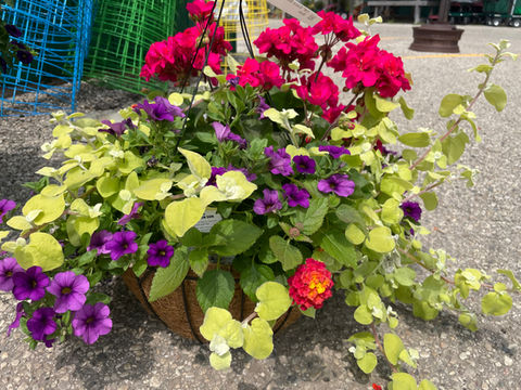 We carry a large selection of hanging baskets, patio planters, individual sun and shade plants, herbs, vegetables and much more!